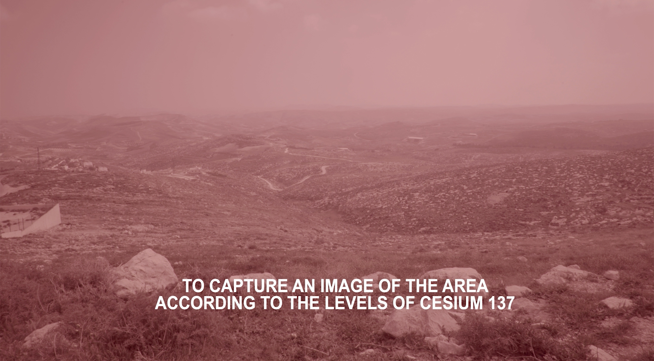 'We Have Always Known the Wind's Direction' has an outward subject and an inward one. Following research conducted by a local nuclear physicist, the work probes the possible burial of nuclear waste and the presence of man-made radiation, in the south of the West Bank. By placing red plastic filter sheets in front of the camera lens in various locations, different shades of red are generated to make visible the levels of radioactivity. In various ways, Halabi deliberately thwarts, withholds or delays the delivery of information, and the film comes to turn on issues of representation and conveyance. The isotope Cesium-137, invisible but deadly could be seen as a synecdoche for a more ungraspable invisibility- the systemic networks of power and control in the region- and this work as a meditation on how to account for the un-filmable but inexorable.